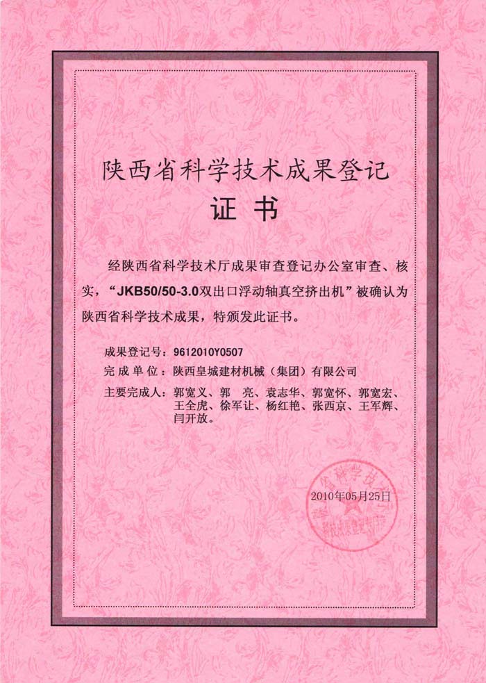 陜西省建材行業(yè)技術(shù)革新獎(jiǎng)
